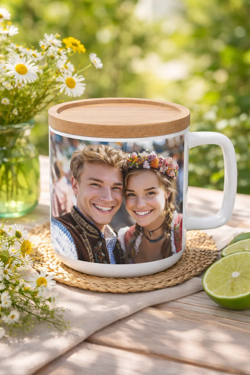 Ten personalizowany kubek z bambusową podkładką to połączenie elegancji i funkcjonalności, które zachwyci każdego miłośnika stylowych detali. Wykonany z wysokiej jakości ceramiki, wyróżnia się gładką, matową powierzchnią idealną pod nadruk – dzięki czemu Twój projekt prezentuje się perfekcyjnie, niezależnie od tego, czy to logo firmy, grafika czy wyjątkowe zdjęcie.