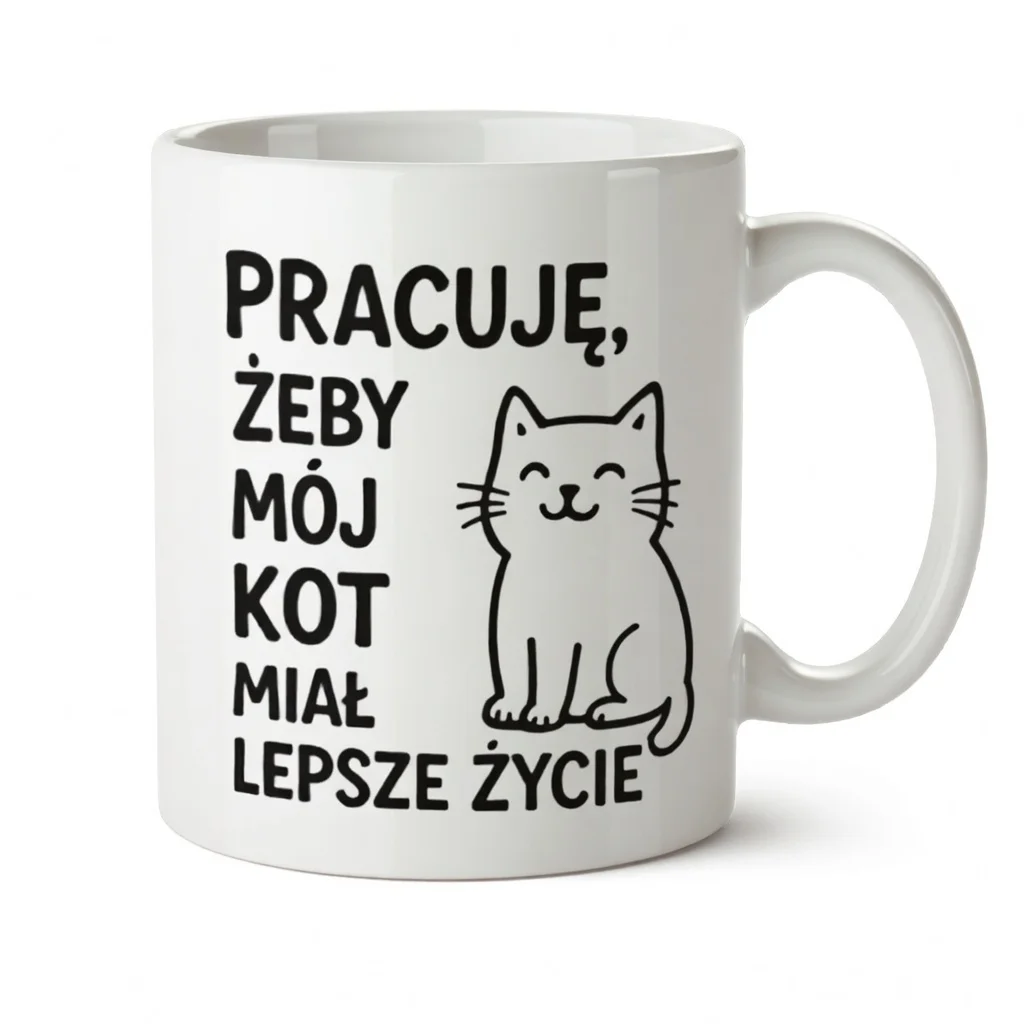Kubek dla kociarza - Pracuję, żeby mój kot miał lepsze życie