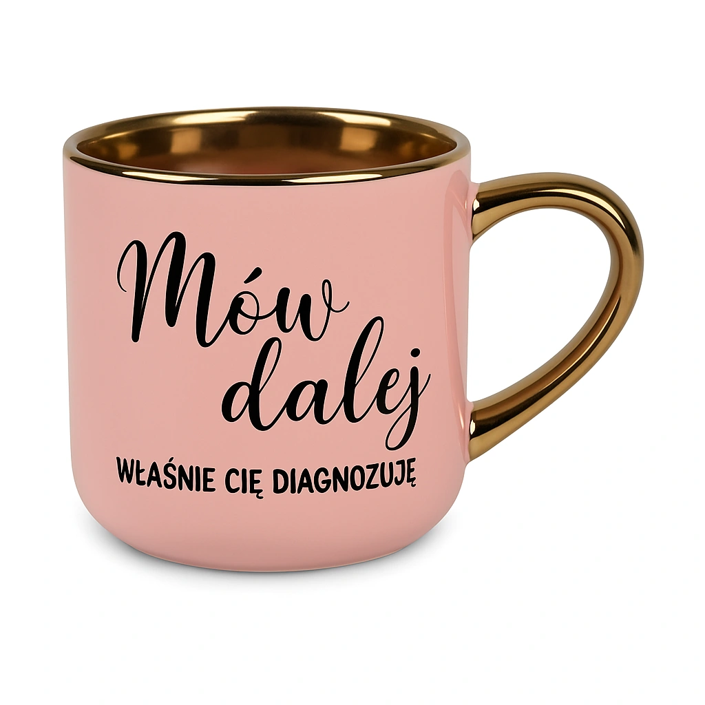 Złoty uchwyt i rant dodają kubkowi niepowtarzalnej elegancji, sprawiając, że świetnie prezentuje się zarówno na biurku w pracy, jak i na stole w domowym zaciszu. Dzięki wysokiej jakości ceramice i precyzyjnemu wykończeniu, kubek jest nie tylko estetyczny, ale i bardzo trwały. Kubek ze złotym wykończeniem to wybór dla osób, które cenią wyjątkowe detale i nowoczesny design.