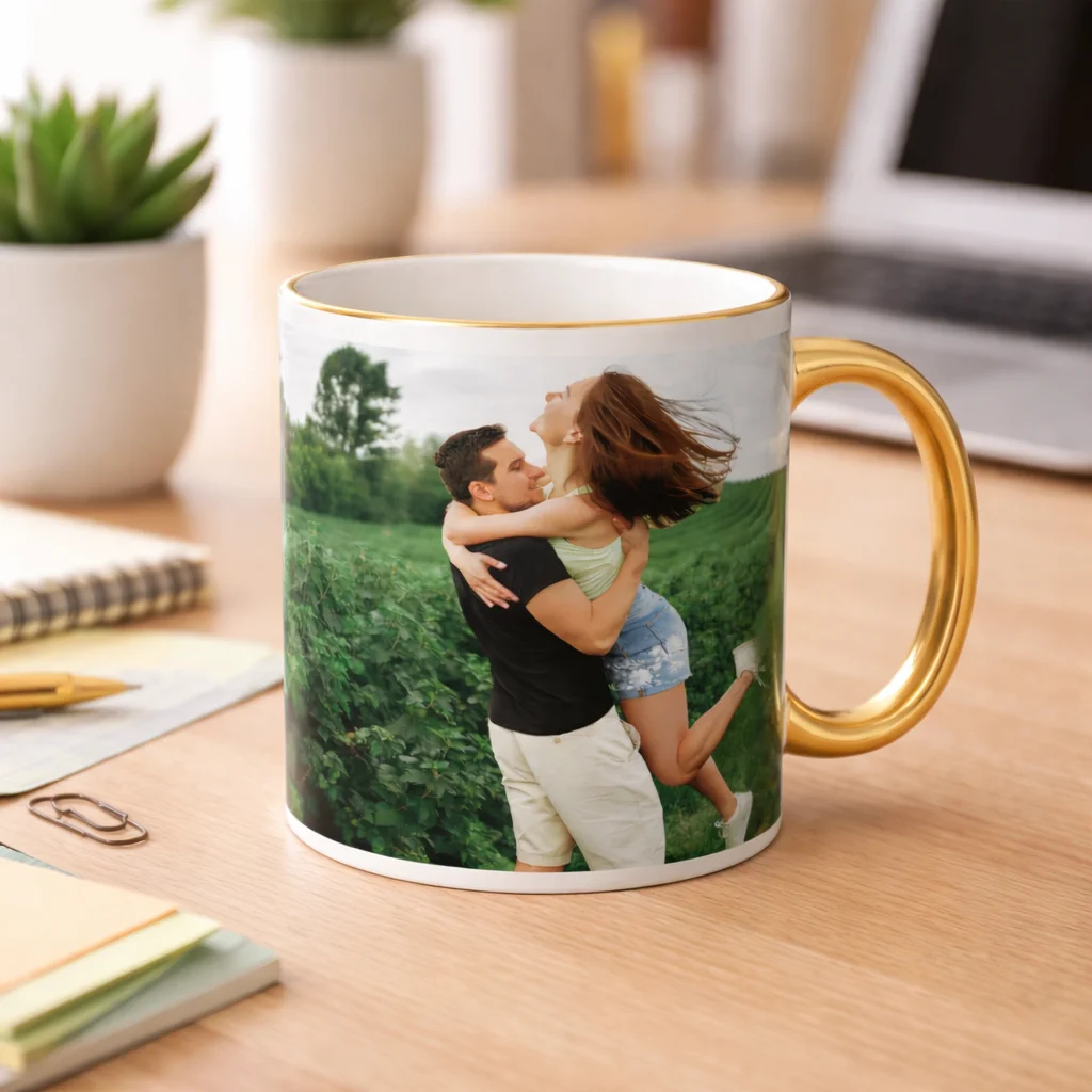 Kubek ze złotym uchwytem – 330 ml elegancji, którą możesz spersonalizować
