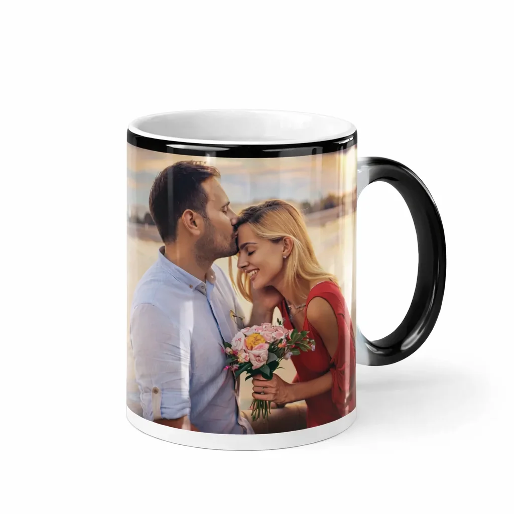 Na pierwszy rzut oka – zwyczajny, czarny kubek. Ale wystarczy chwila, by odkryć jego sekret. Wlej gorący napój i zobacz, jak na Twoich oczach pojawia się zdjęcie, grafika lub ulubiony cytat. Magiczny kubek reaguje na ciepło, ujawniając nadruk, który przed chwilą był całkowicie niewidoczny. To jak mały spektakl – tylko dla Ciebie.