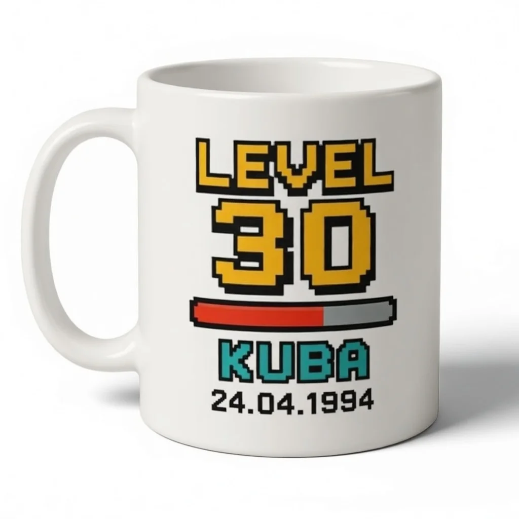 Wiek? To tylko kolejny level do odhaczenia! Kubek „Level Up” to prezent, który mówi: gratulacje, odblokowałeś nowy etap życia! Idealny dla fanów gier, geeków, nerdów i wszystkich tych, którzy swoje urodziny wolą traktować jak kolejny poziom w ulubionej grze.