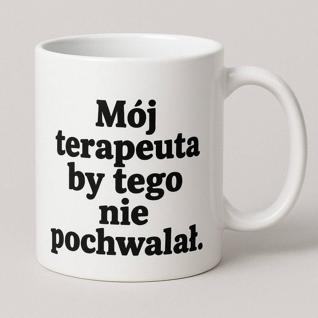 Kubek „Mój terapeuta by tego nie pochwalał” – z dystansem do siebie