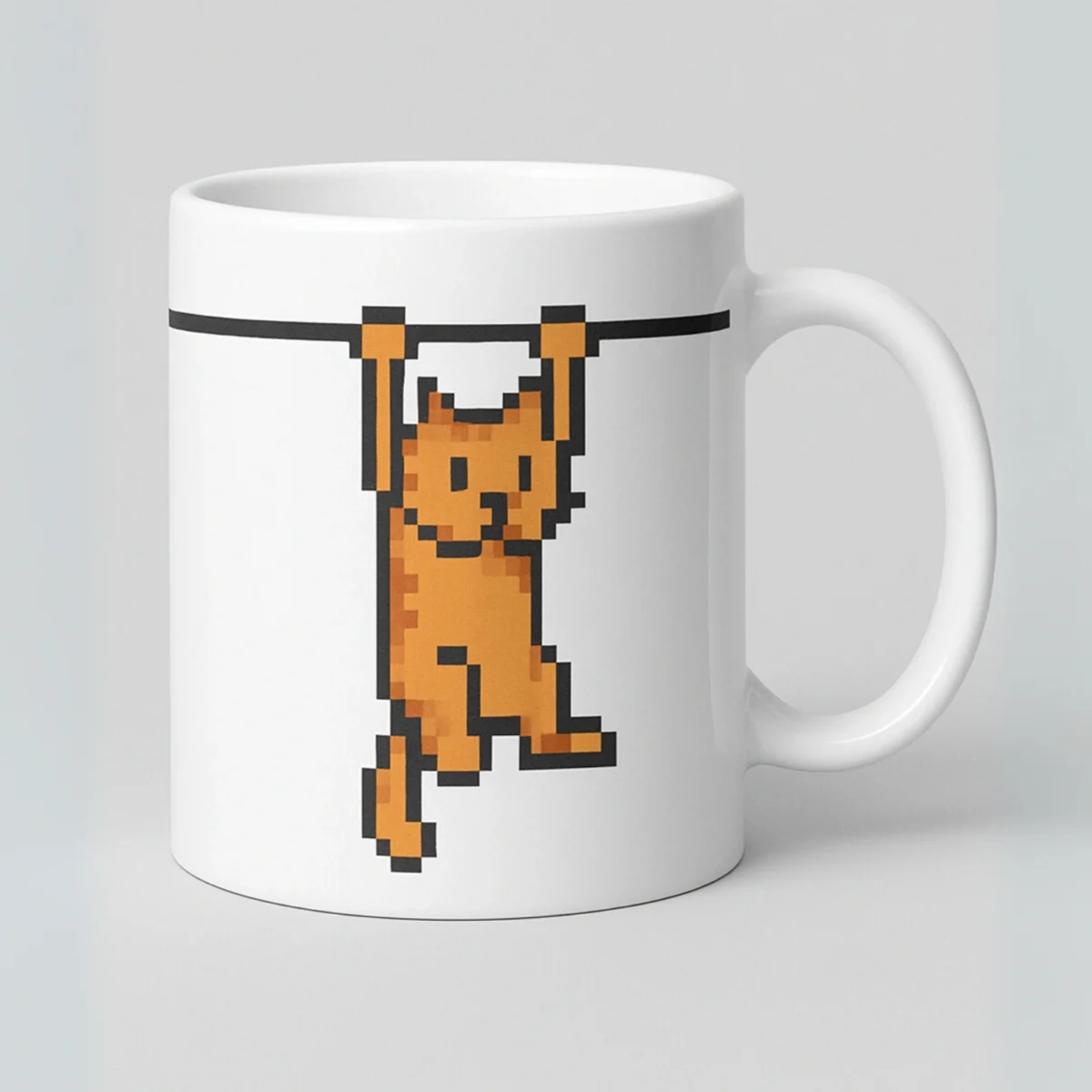 Niech codzienny rytuał picia kawy będzie nie tylko dawką kofeiny, ale i solidną porcją nostalgii. Pixel Cat – kubek z charakterem, który zwisa z kabla jak Twoje ostatnie resztki energii o 8:00 rano. 😼