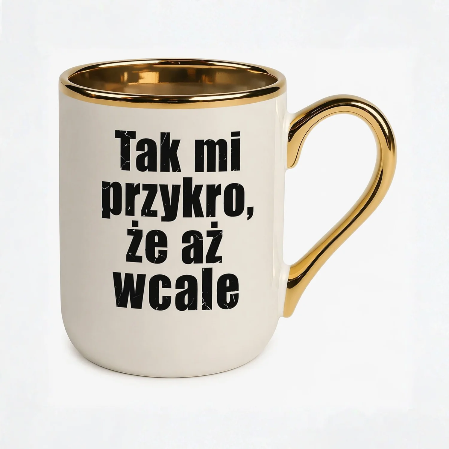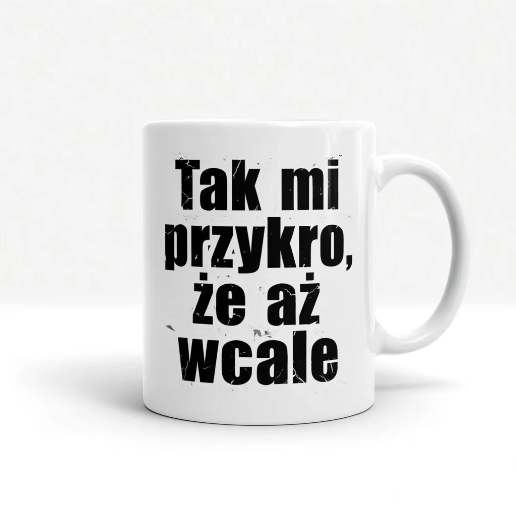 Kubek z zabawnym napisem „Taki mi przykro, że aż wcale” – współczucie w wersji minimalistycznej