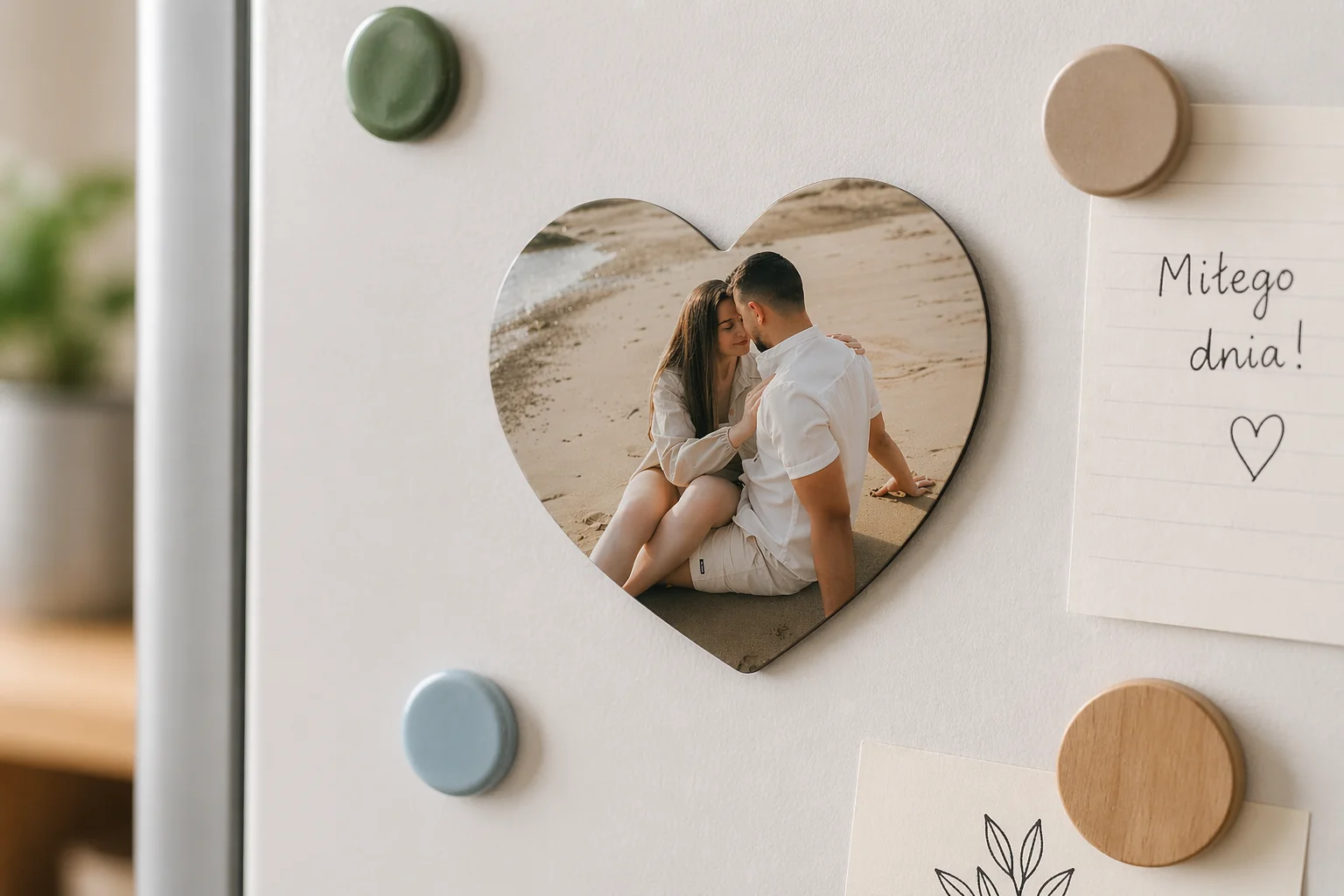 Stwórz wyjątkową pamiątkę, która każdego dnia będzie wywoływać uśmiech. Magnes w kształcie serca ze zdjęciem to idealny sposób, aby uwiecznić najpiękniejsze wspomnienia i mieć je zawsze pod ręką – na lodówce, tablicy magnetycznej czy innym metalowym miejscu.