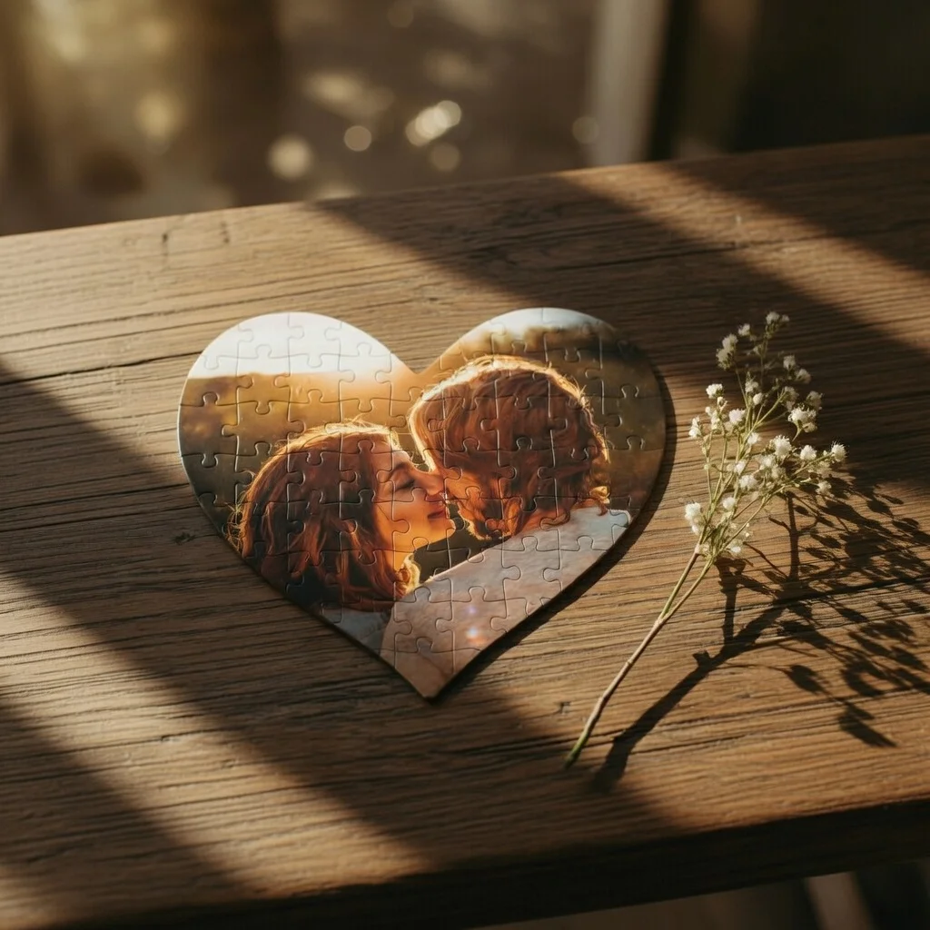 Puzzle w kształcie serca z Twoim zdjęciem – magia wspomnień zamknięta w 63 elementach!