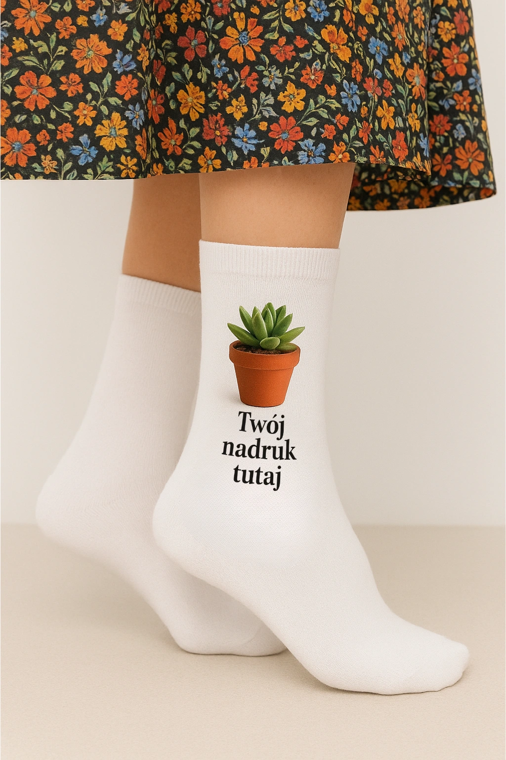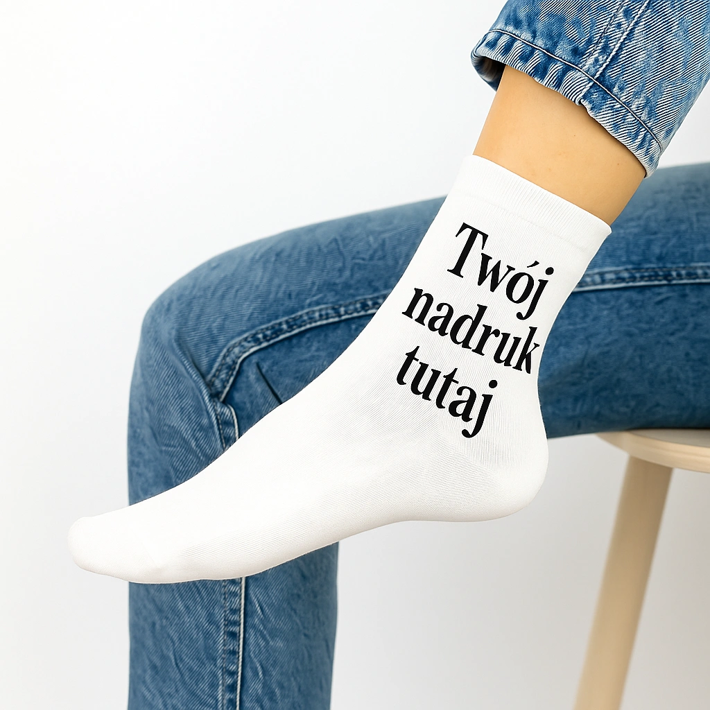 Białe skarpetki damskie z własnym nadrukiem są idealne dla kobiet ceniących wygodę i estetykę. Świetnie sprawdzą się jako element codziennego stroju lub jako spersonalizowany upominek. Dzięki nadrukowi mogą być także niepowtarzalnym gadżetem reklamowym.