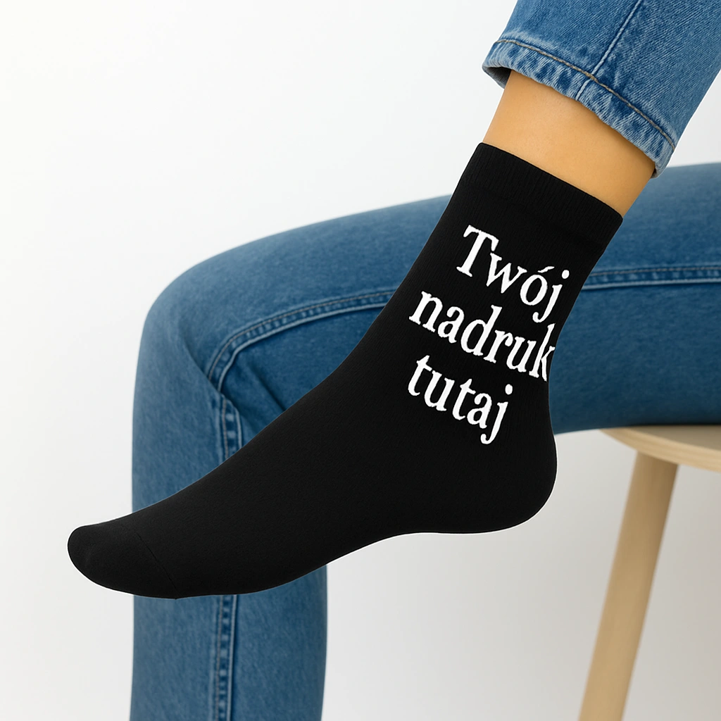 Czarne skarpetki damskie z własnym nadrukiem – klasyka z twistem