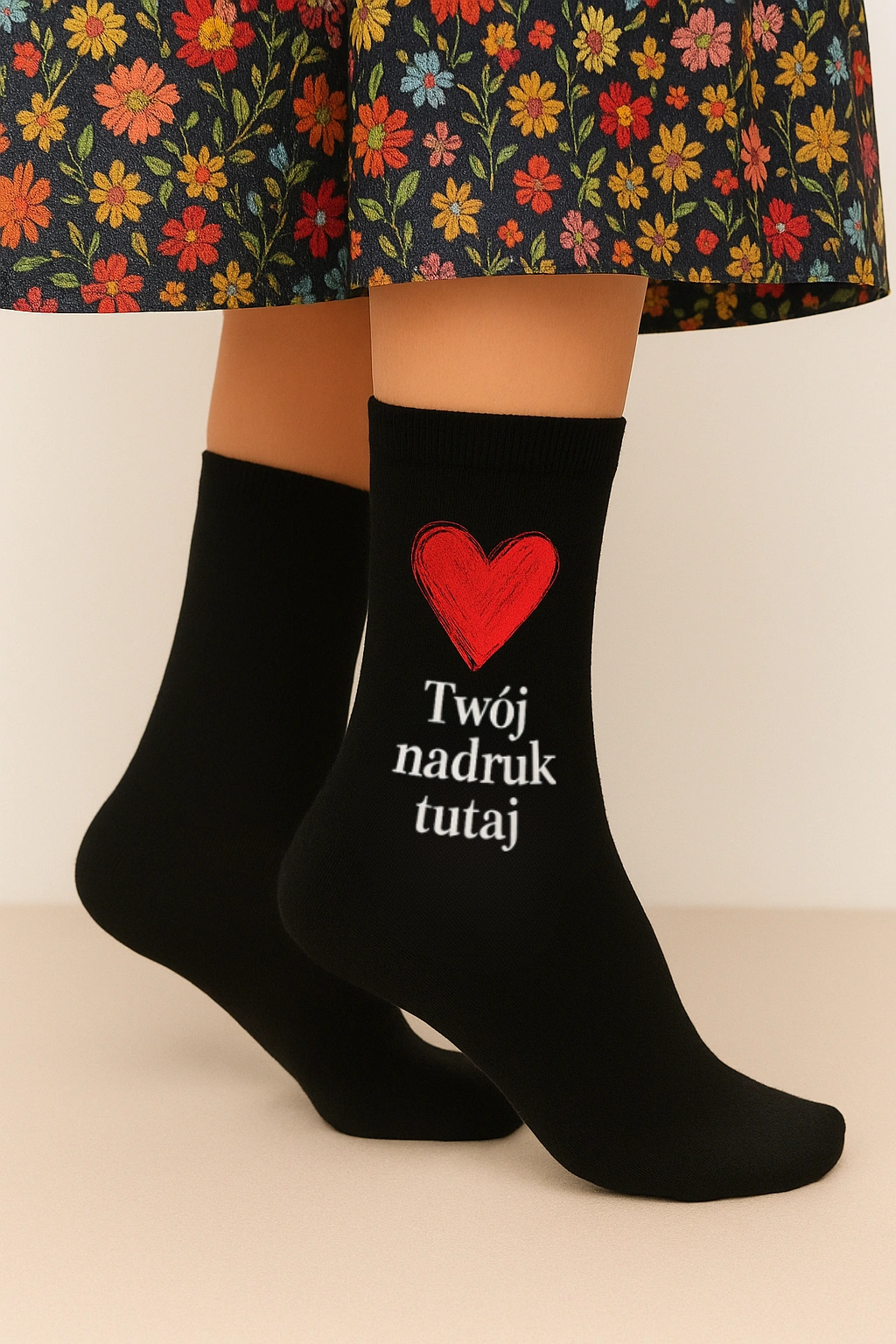 Czasem elegancja kryje się w detalach – a czasem… na skarpetkach. Te czarne damskie skarpetki to nie tylko wygodny element garderoby, ale też małe płótno do wyrażenia siebie. Serio – możesz nadrukować, co tylko chcesz, i to na każdej z nich osobno. Lewa romantyczna, prawa z pazurem? Czemu nie.