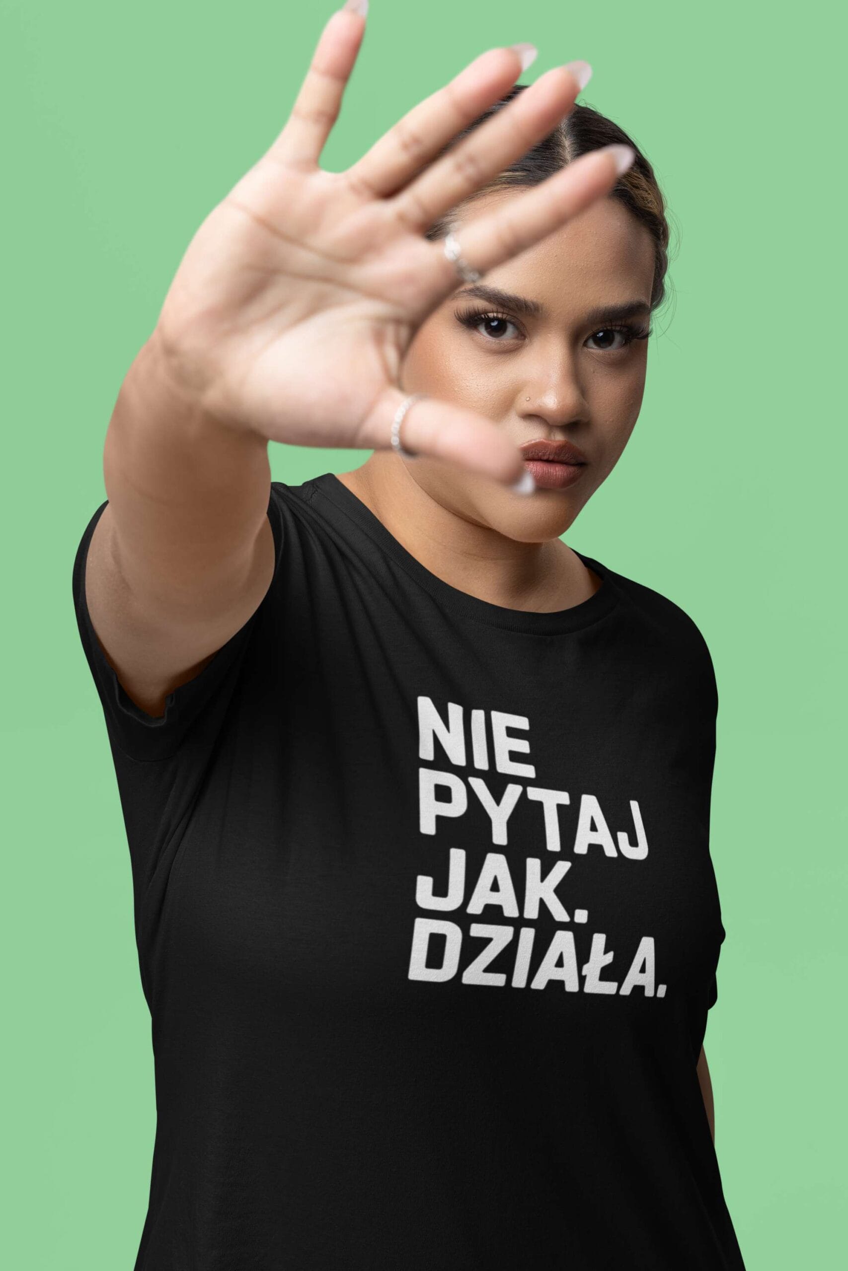 👕 T-shirt z nadrukiem „Nie pytaj jak. Działa.”